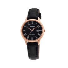 This contemporary ORIENT 30.0mm quartz watch showcases its gold stainless steel case and crocodile textured band with an alluring white dial. Complementing its sophisticated design are a convenient date aperture and stylish hands and hour markers. The RF-QA0001S supports water resistance of 30 meters.
